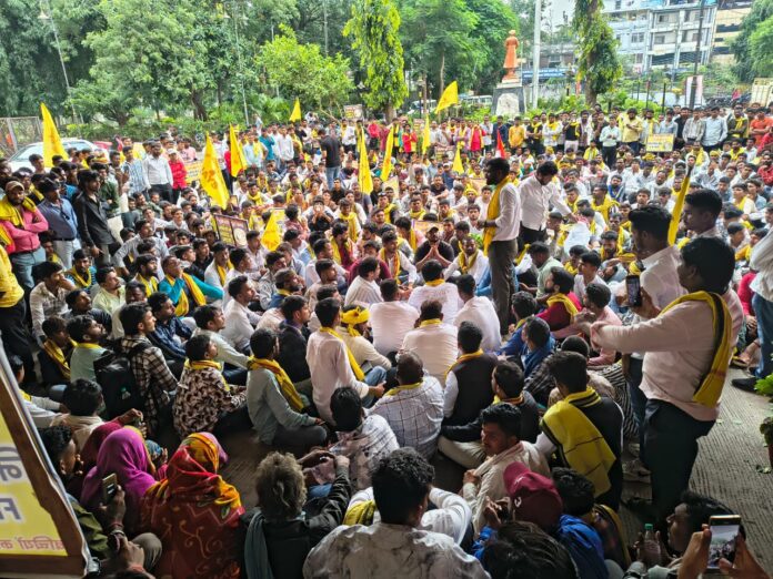 मध्य प्रदेश के इंदौर में महाराजा यशवंतराव अस्पताल (MYH) के मेन गेट पर रविवार से जय आदिवासी युवा शक्ति (जयस) संगठन ने अनिश्चितकालीन धरना शुरू कर दिया है.