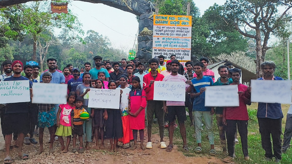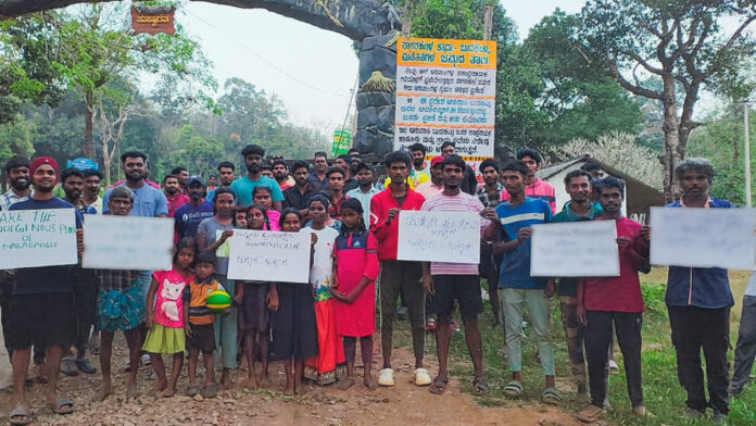 अपने उपर लगे आरोप के बाद नागरहोल के आदिवासी समुदाय ने 25 नवंबर को नानाची गेट पर प्रदर्शन किया. करीब 30 आदिवासी पुरुष, महिलाएँ और बच्चे पोस्टर लेकर खड़े हुए.